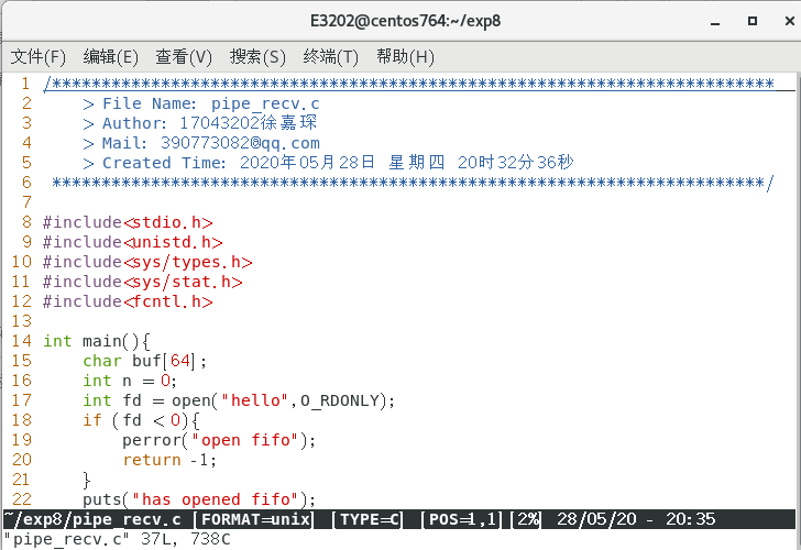 分别开启两个终端,分别运行 pipe_send 和 pipe_recv :