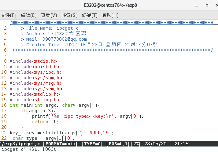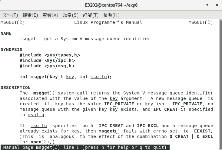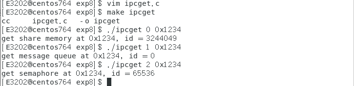 程序 ipcget 用于在指定的键值上获取 ipc 内核对象的 id 号。使用格式为 ./ipcget ,比如