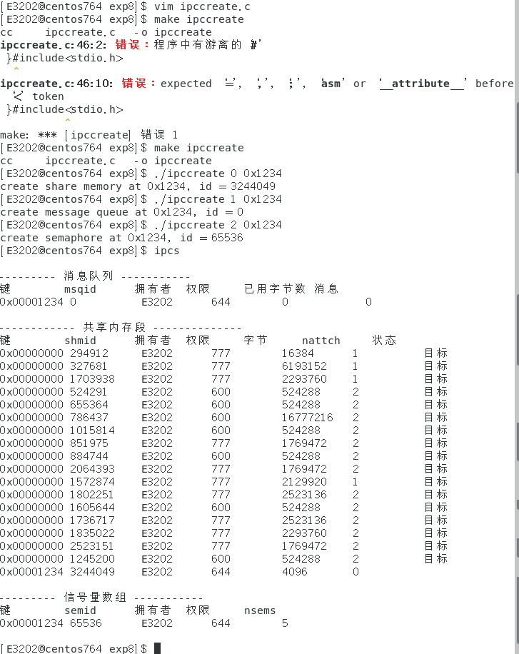 4.编写两个程序分别通过指定的键值创建 IPC 内核对象,以及获取该指定键值的 IPC 内核对象。