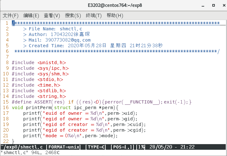编写一个程序 shmctl 可以用来创建、删除内核对象,也可以挂接、卸载共享内存,还可以打印、设置内核对象信息。具体使用方法具体见下面的说明: