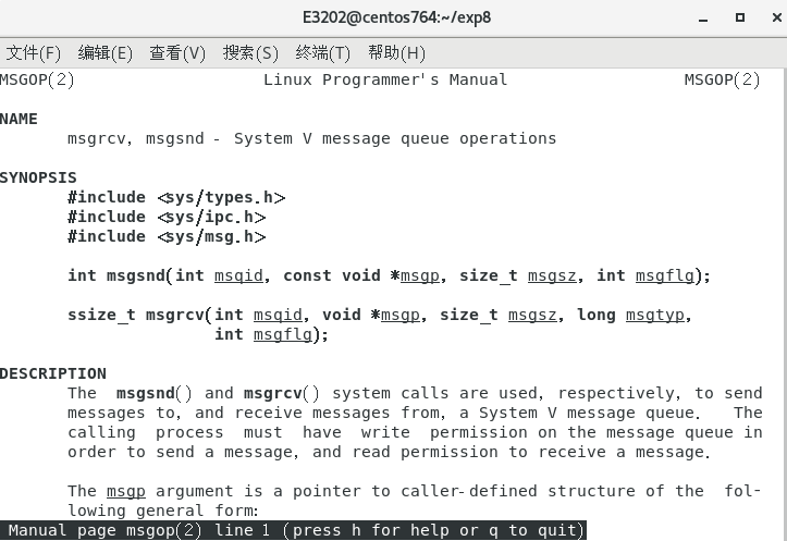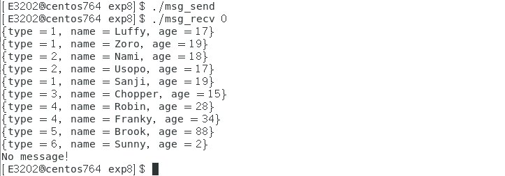 先运行 ./msg_send ,再运行 ./msg_recv 。