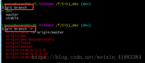 1.查看远程分支:git branch 或者 git branch -r【高亮为当前所在分支】