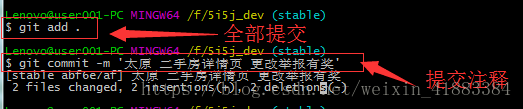 6.添加文件 git add .(.全部,或者文件名)+添加注释:git commit -m ‘注释’