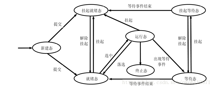 就绪->运行:通过CPU调度获得时间片