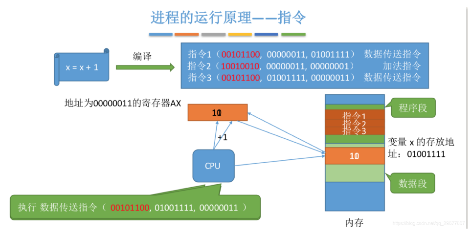 每个小房间就是一个存储单元。按字节编址时,每个存储单元大小为1字节(即8bit);若一个16位字长的计算机,按字编址时,每个存储单元大小为1个字(16bit)。 - 何为指令