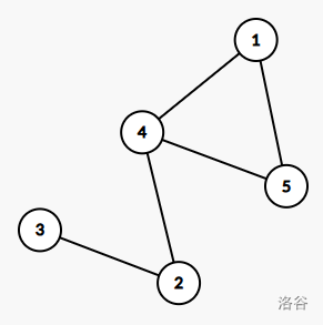 每一个环都可以视为由两点间的一条边与这两点间的路径组成,例如下面这张图,存在唯一的一个环就可以视为 \((1,5)\) 这条边与 \((1,4),(4,5)\) 这条由 \(1\) 到 \(5\) 的路径组成。