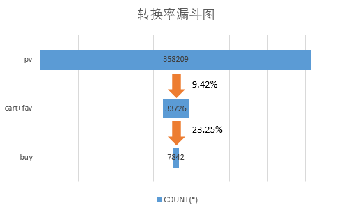 可以看到浏览后流失的用户数占总流失的88.88%,但是加购收藏后流失的用户数只占0.08%,从这个角度看,可以在商品宣传推广或详情页展示时采取措施鼓励用户进行加购或者收藏,如已经广泛采用的收藏加购可快速发货或送小礼品等,提升从浏览点击到收藏加购的转化率
