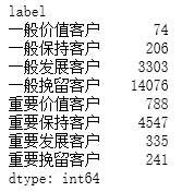 #统计各层次用户数 rfm.groupby('label').size()