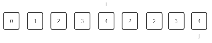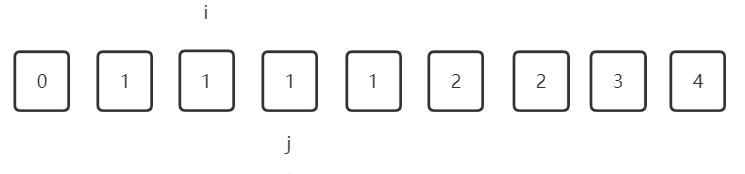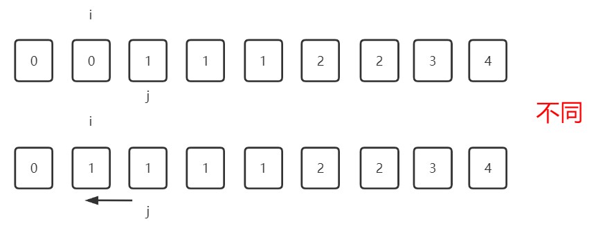当j+1时 判断元素是否与i所在元素相同 如果相同则继续向前寻找 找到不同时用这个位置的元素替换掉i所在位置的元素