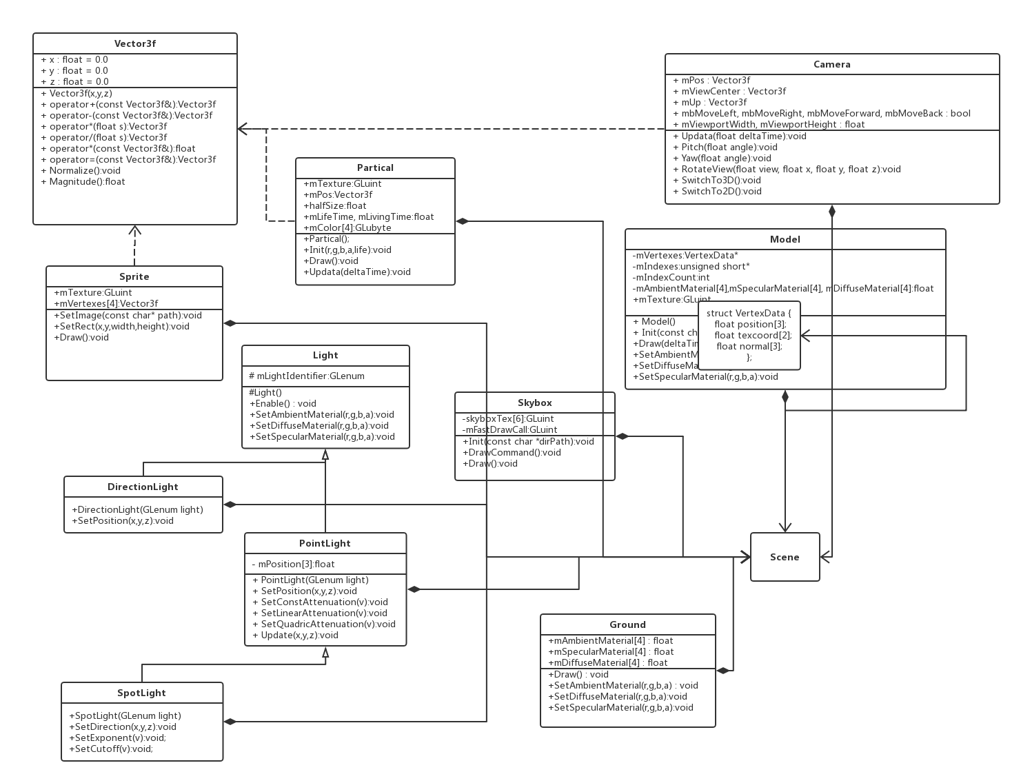 参考主流的渲染引擎,实现基本的摄影机,天空盒,模型,贴图,粒子系统,以及漫游功能