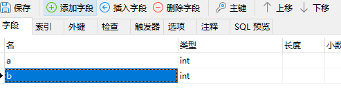 创建test数据库,在数据库中创建student表,添加a(int), b(int)两个字段。