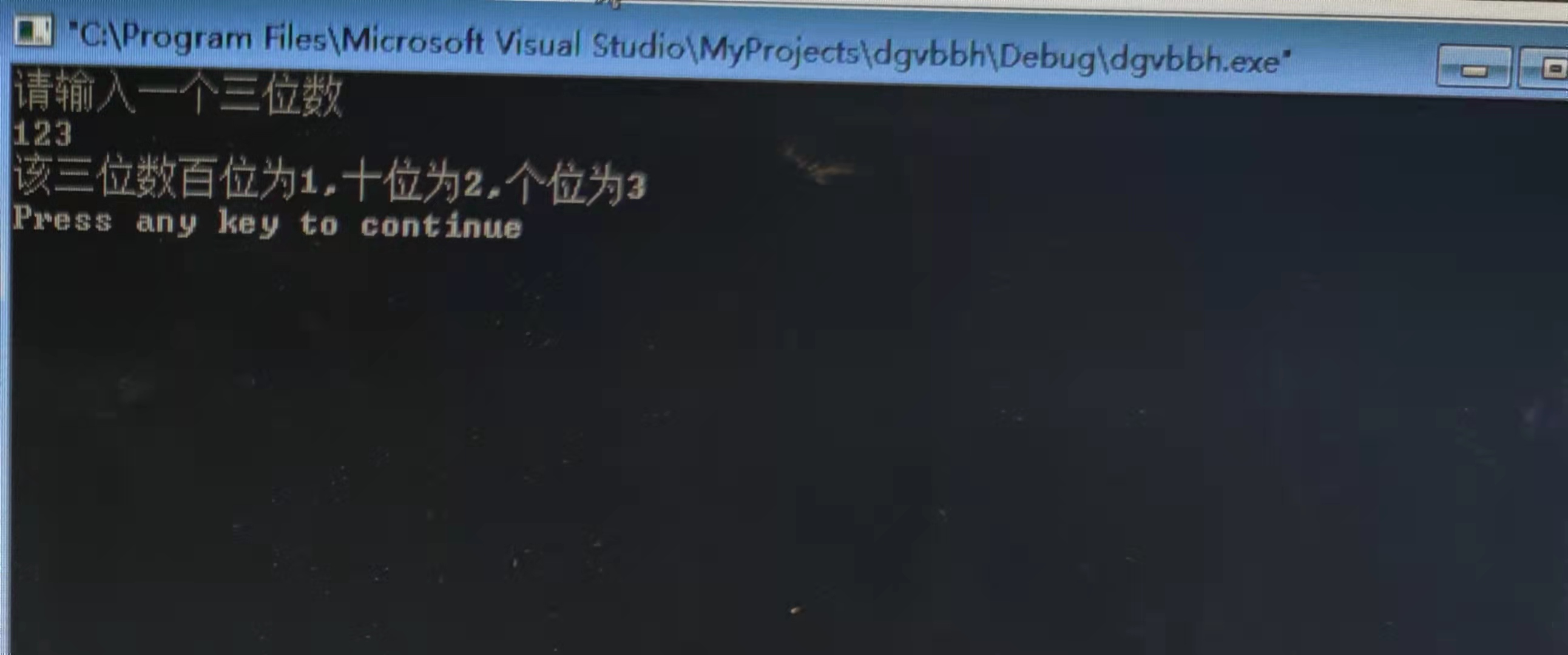 printf("该三位数百位为%d,十位为%d,个位为%d\n",a,b,c);