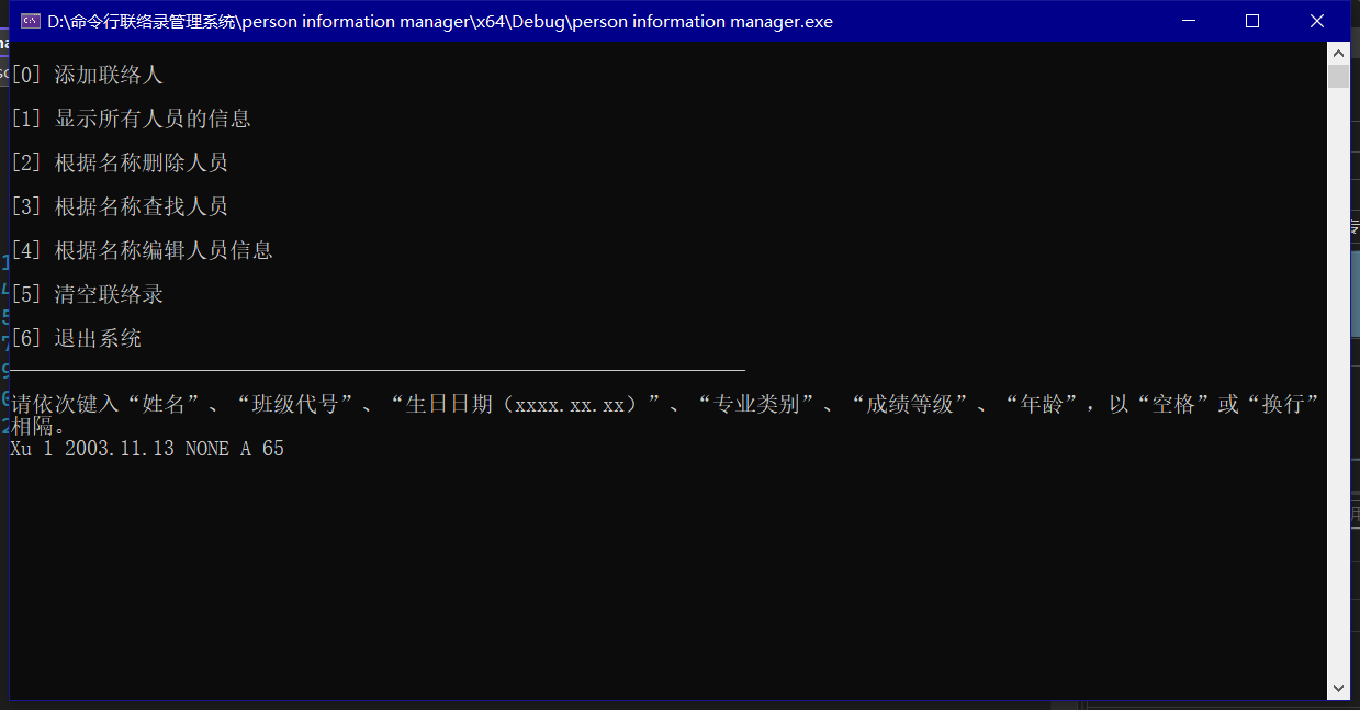 使用结构体数组与指针实现的命令行人员信息管理系统(C++)