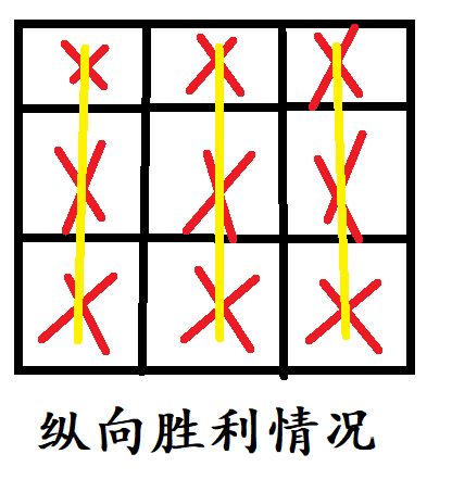 玩过井字棋的人都知道,井字棋的胜利条件是有限的,只需要判断横竖斜行中是否有三个棋子一样的情况就行了。