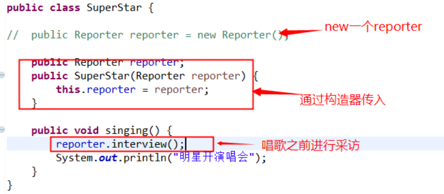 该方法优点就是,对象在构造完成之后,即已进入就绪状态,可以马上使用,而缺点自然就是,当依赖对象比较多时,构造方法的参数列表会比较长,且构造方法无法被继承,无法设置默认值