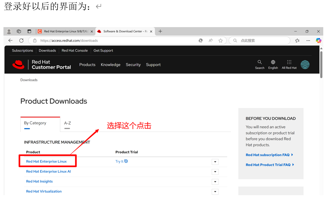 红帽8_iso镜像文件下载地址:https://access.redhat.com/zh_CN/downloads