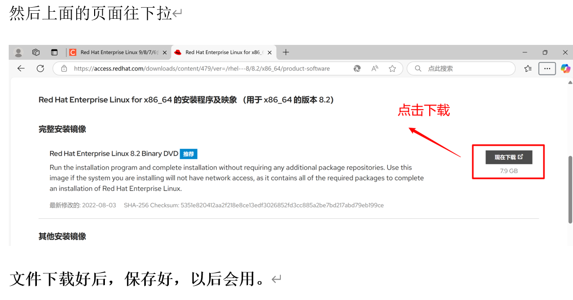 RHEL8的可以直接从官方网站进行下载,但是下载速度可能过慢,下面放入下载链接(需要注册红帽用户才可以下载)