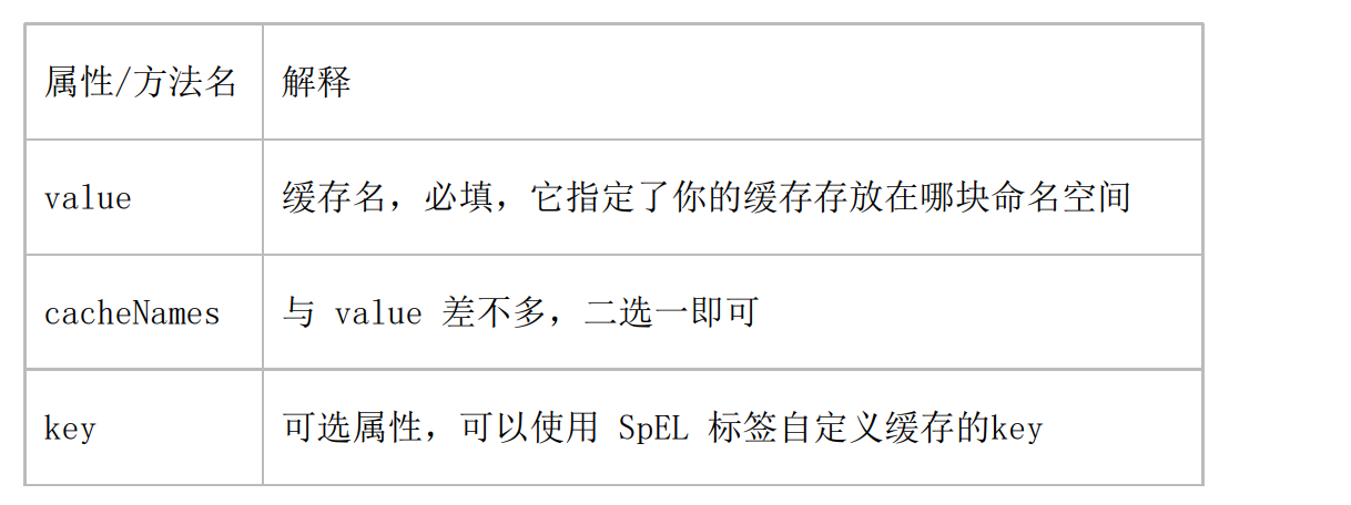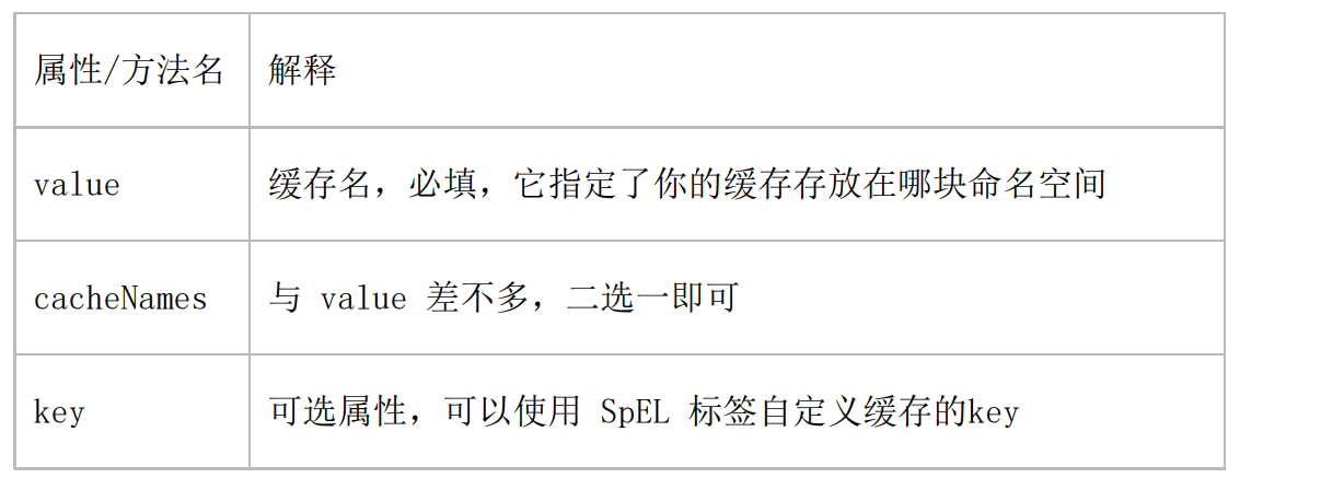 根据方法对其返回结果进行缓存,下次请求时,如果缓存存在,则直接读取缓存数据返回;如果缓存不 存在,则执行方法,并把返回的结果存入缓存中。一般用在查询方法上。