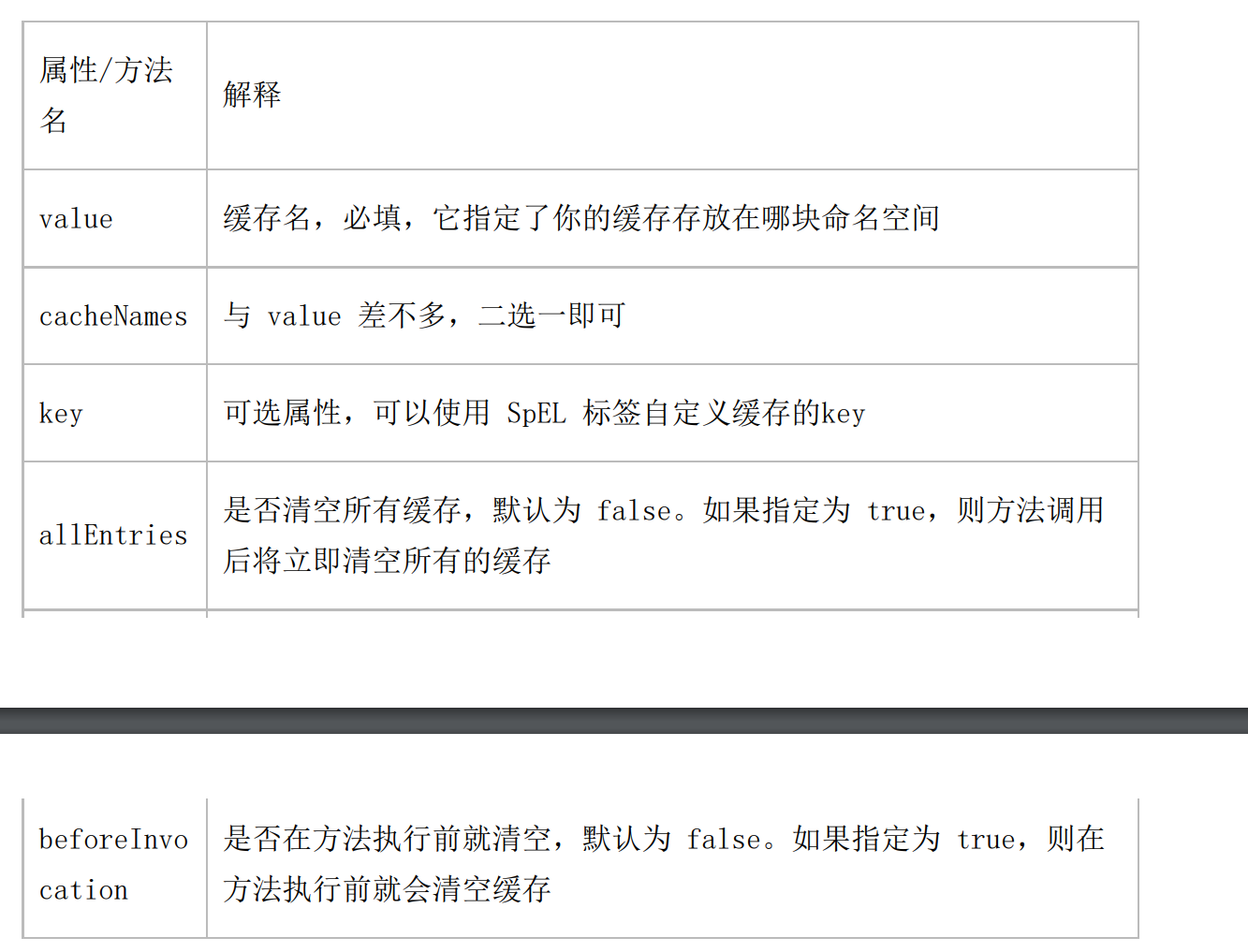 使用该注解标志的方法,会清空指定的缓存。一般用在更新或者删除方法上
