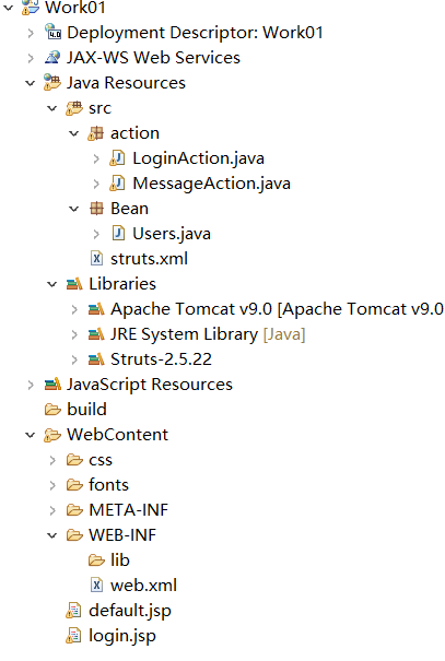 主要是分为显示页面的登录界面login.jsp、发送消息的default.jsp、action的配置,struts.xml和web.xml的配置