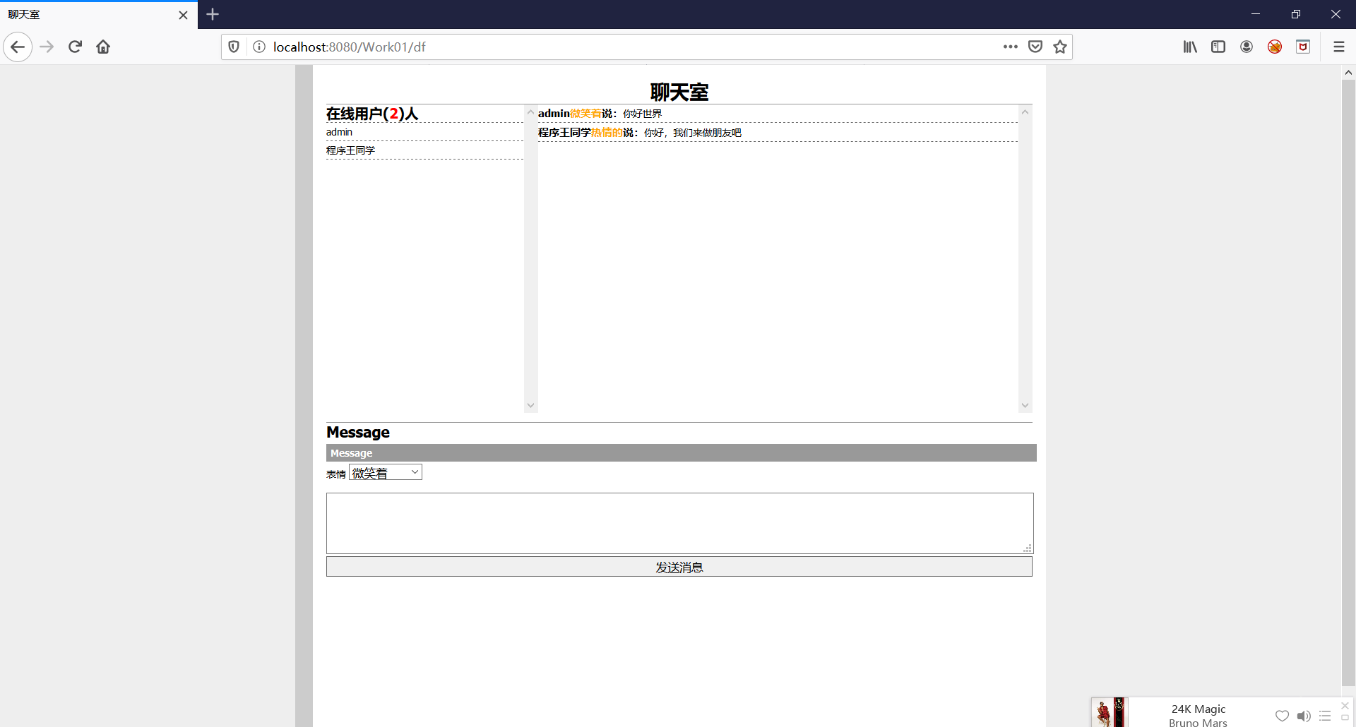 这样的一个聊天室相对来说比较简单,没有连接数据库,页面也只是拥有了一个初步的交互功能,当做练习来说也可以了,可以熟悉一下Struts2的框架的使用
