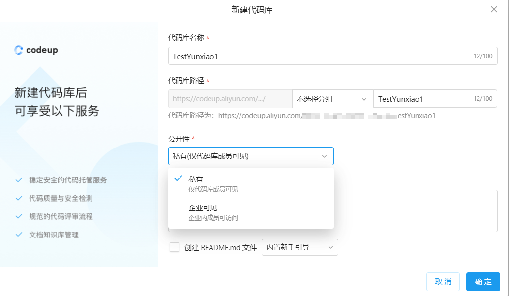1、创建一个代码库,可见非常方便,特别是人员分组方面,对于代码库的权限控制功能可见是很成熟的。