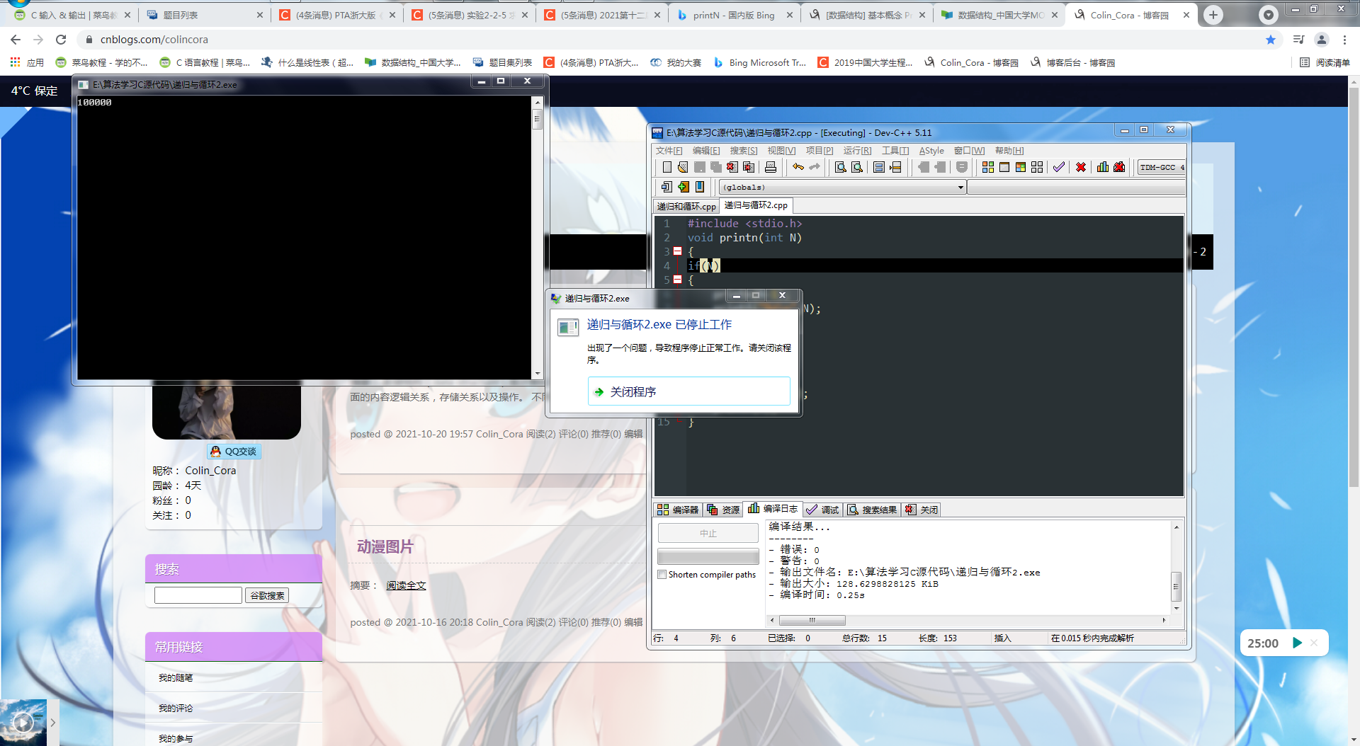 在做打印运算时,对递归100000,系统罢工---