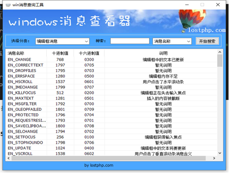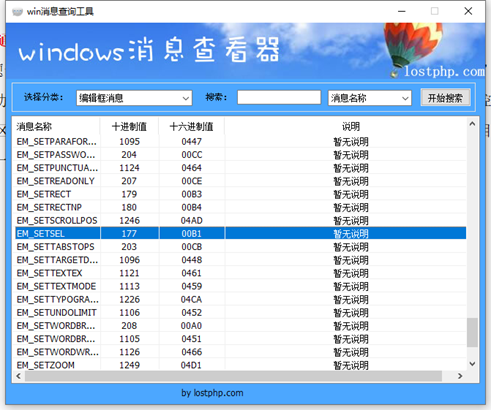 标题说的控件有两种消息。第一种“控件命令消息”,一般直接叫“控件消息”,本人的理解是由我们主动发送给控件用以获取或改变控件的消息,例如EM_SETSEL 我们向edit控件发送这个消息来设置选区,又如CB_GETCOUNT,我们向combobox控件发送这个消息来获取项目数量。这些消息可以用上一章所用的工具查看: