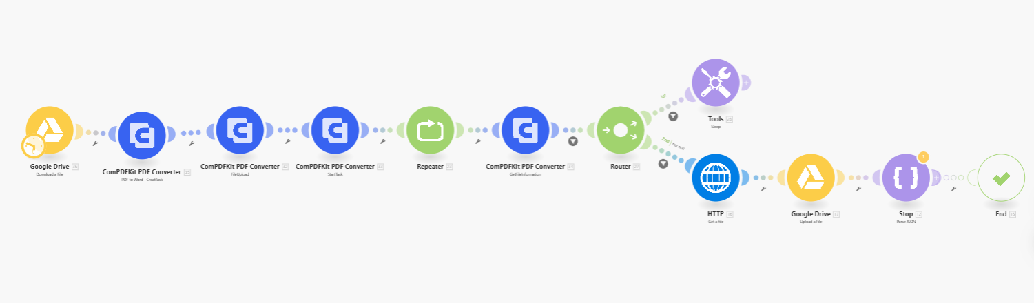 在现代企业中,文档处理流程的自动化不仅能提升工作效率,还能减少人为错误,确保流程的高效性和一致性。通过 Make平台,你无需任何编码经验,就能快速构建符合特定业务需求的文档处理工作流。今天,我们将通过一个实际的例子,向你展示如何使用 ComPDFKit 的 PDF 转 Word 功能,轻松完成文档转换的流程。
