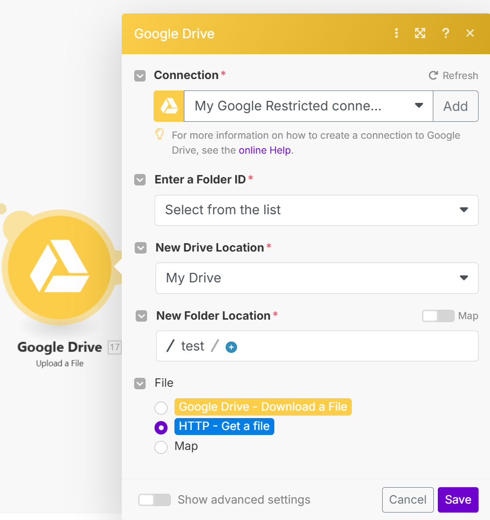我选择 Google Drive 作为示例。记得点击创建连接来连接你的 Google Drive。如果你不知道如何连接,请按照给出的说明进行操作。
