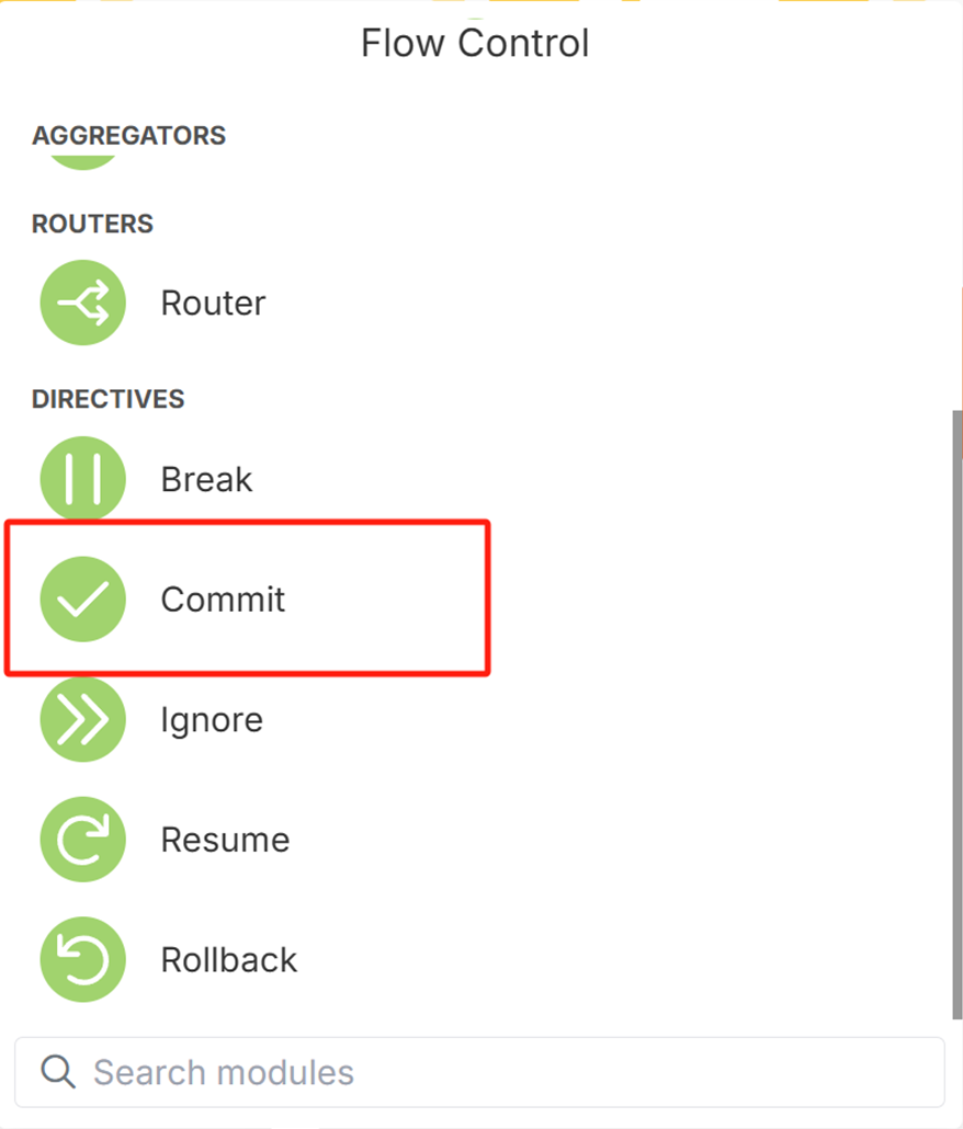 5. 选择Flow Control—>Commit以结束工作流程。