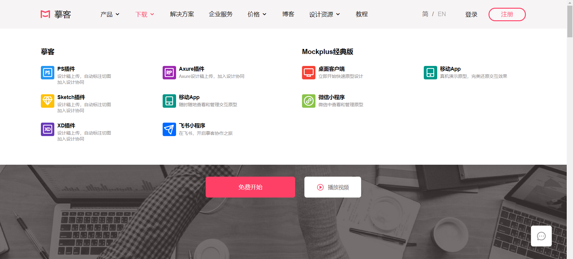 进入摹客的官网https://www.mockplus.cn/,在下载选项栏即可选择自己想要下载的版本。我选择的是桌面客户端。下载安装过程十分简便,在此就不赘述。