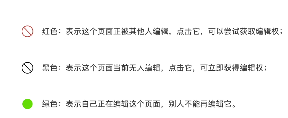 在自己编辑的时候,项目前会显示绿色的图标,表示自己有权编辑,而其他成员的项目前则显示的是红色图标,表示自己无权编辑,编辑完后,点击绿色圆点即可放开权限。