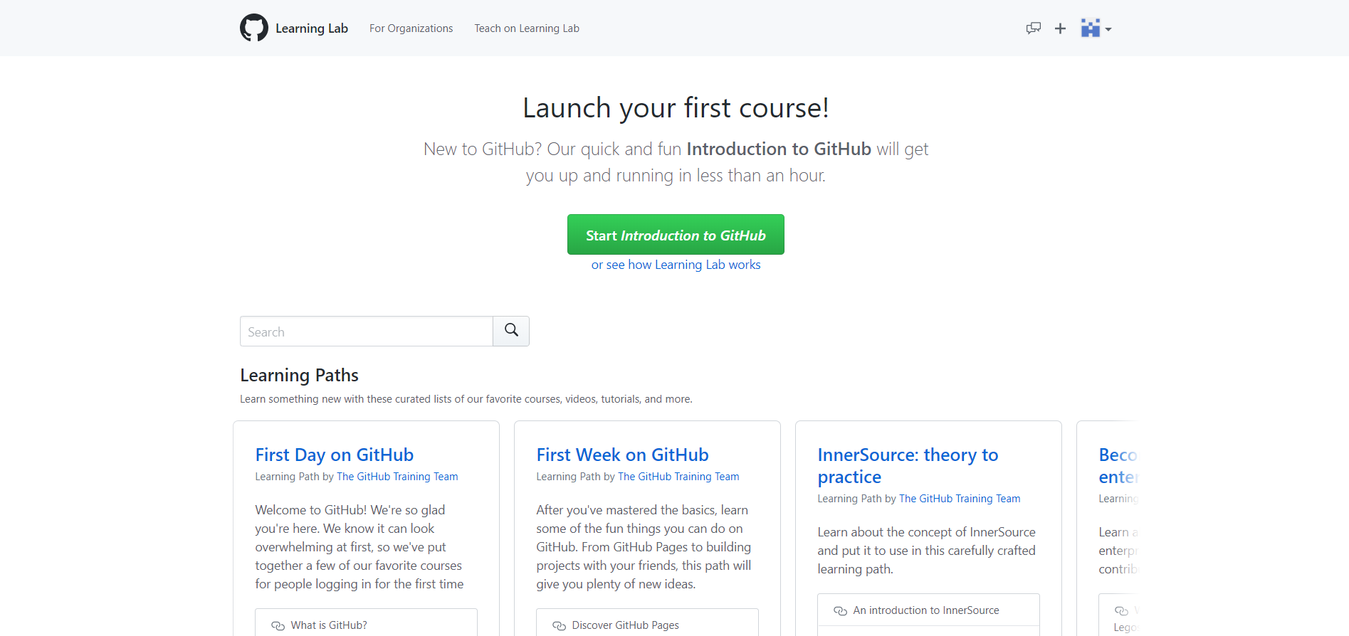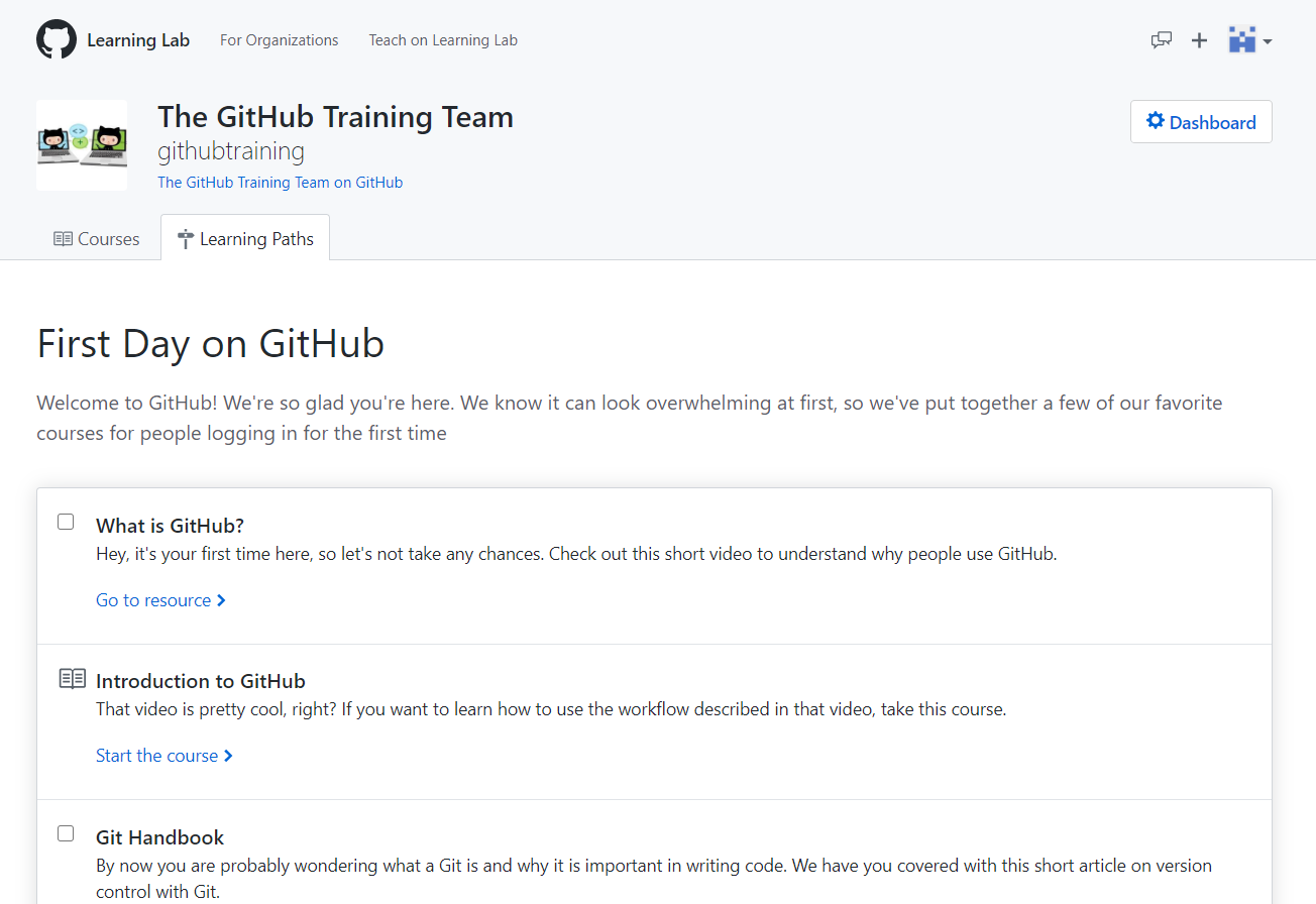 除此之外,GItHub官方还出了一个交互式教程——GItHub学习实验室(Learning Lab),里面包含了许多内容,可以让我们掌握所需的技能。https://lab.github.com/