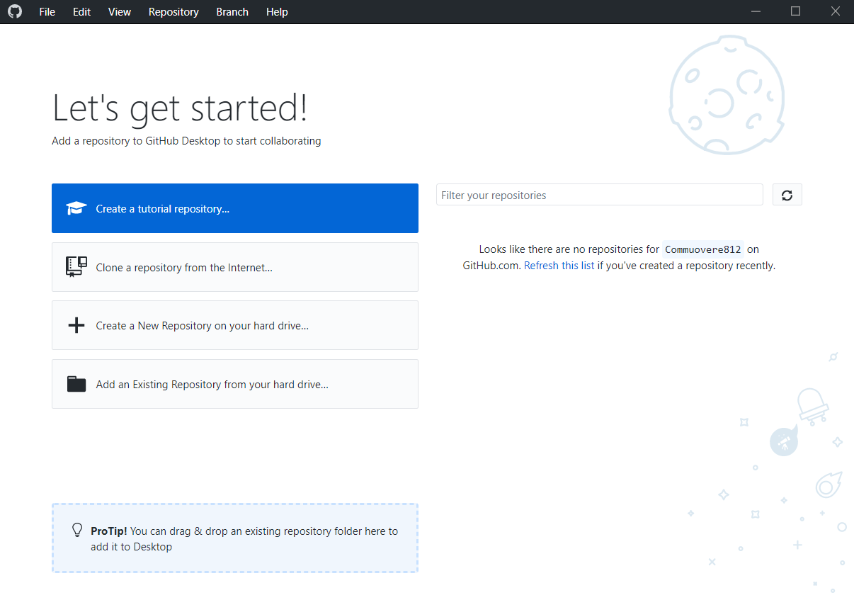 或者我们也可以下载GitHub的Windows桌面版,在https://desktop.github.com/可以下载GitHub Desktop。