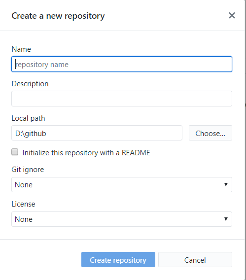 第一次提交该项目会出现如下对话框,提示你这是一个新的存储库,可以自定义库的名字,并添加描述。