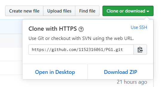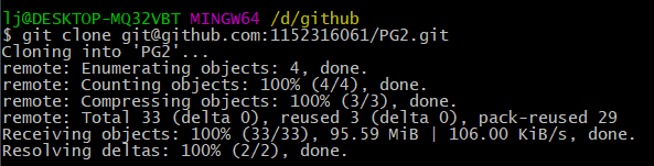 用git clone +url(如:git@github.com:1152316061/PG2.git)即可开始clone。