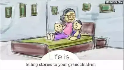 给孙子孙女讲故事。