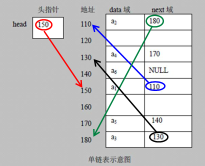 2) 每个节点包含 data 域(用来存储数据), next 域: 指向下一个节点(next中存储了要指向节点的内存地址)