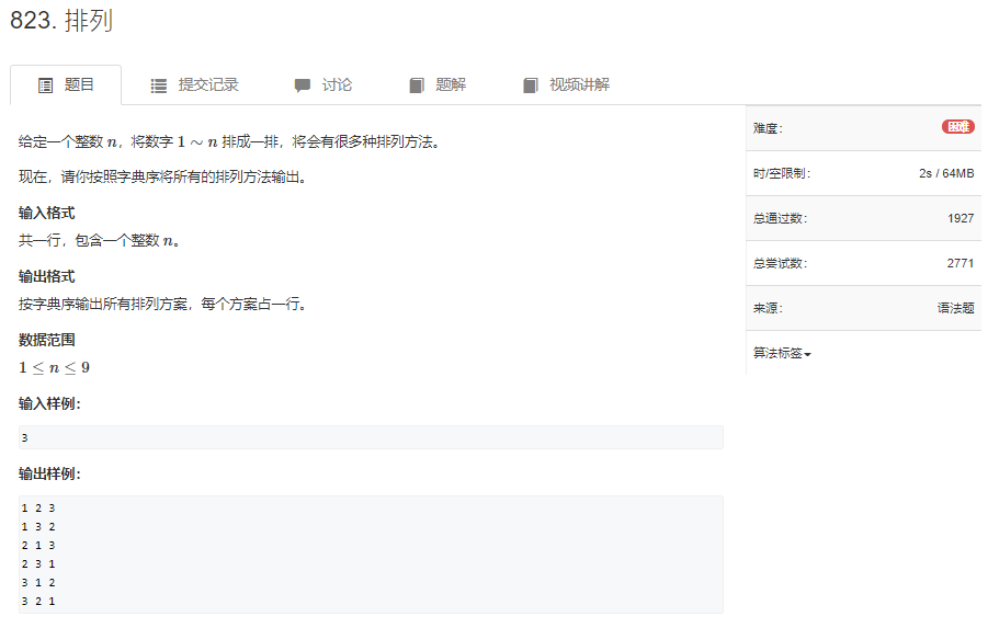 例题1、原题链接:Acwing.823排列