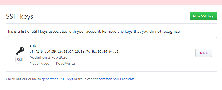 继续顺着步骤,得到下图,此时已经成功建立ssh key | |