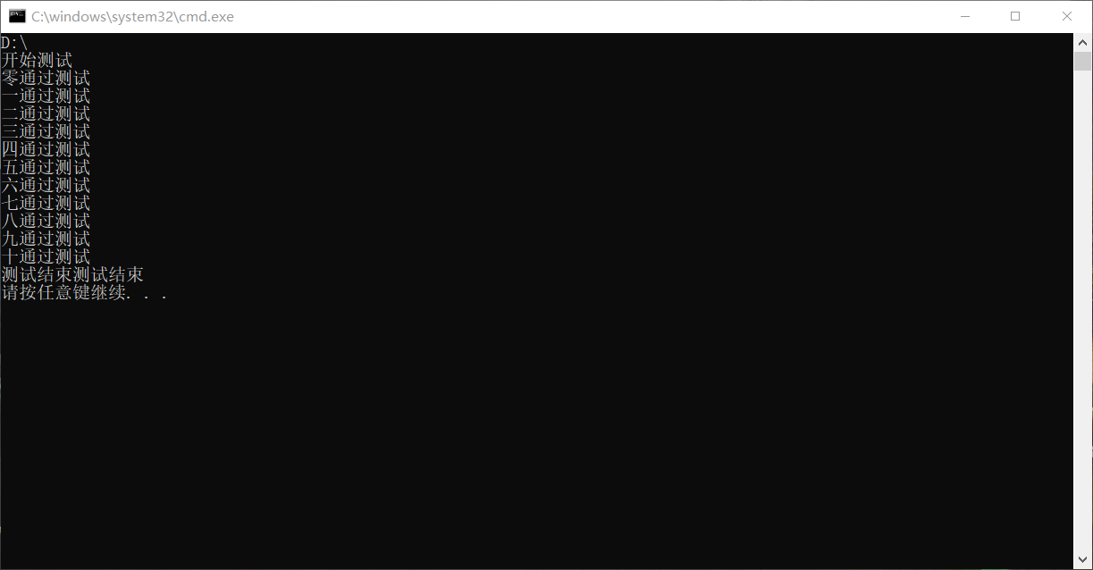 printf("通过测试\n");