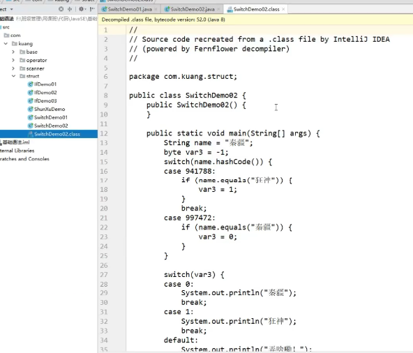 //反编译 Java---class (字节码文件) ----反编译 (IDEA)