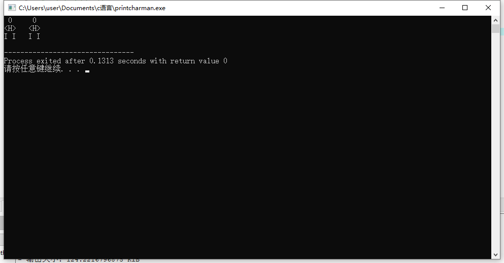 #include <stdio.h> int main(){ printf(" 0 0\n" ); printf("<H> <H>\n" ); printf("I I I I\n" ); return 0; }