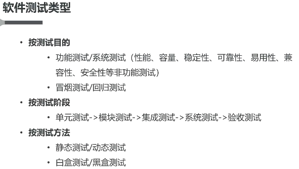 冒烟测试:正式测试前进行简单的验证。目的是确认软件基本功能正常可以进行后续的测试工作。