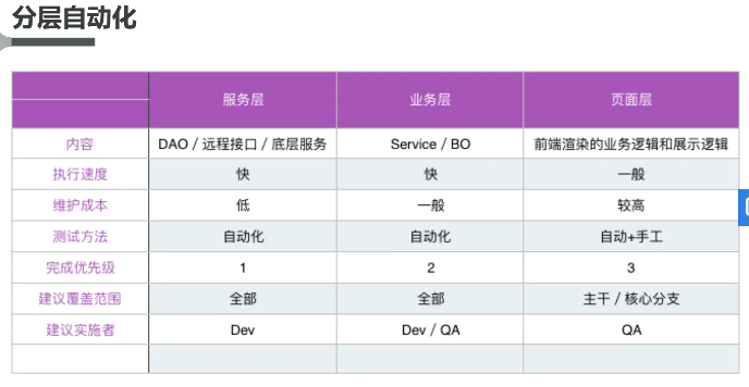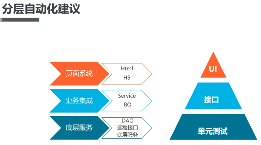 为了降低自动化的成本,提高自动化的覆盖率和稳定性,建议在实施自动化的时候进行分层处理。