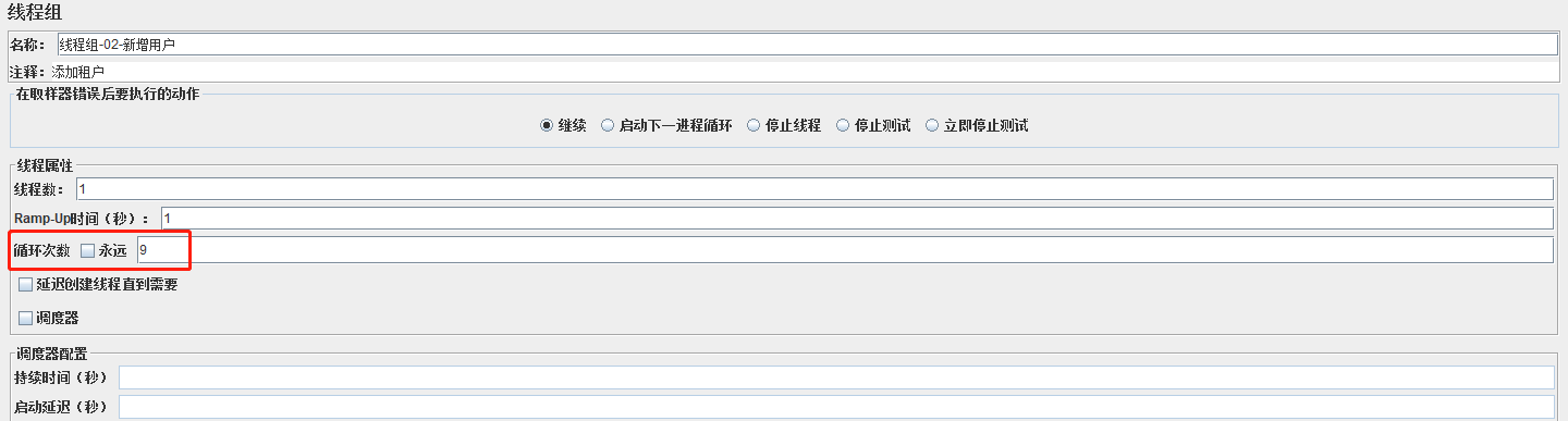 4、设置线程组循环次数,保存,运行。