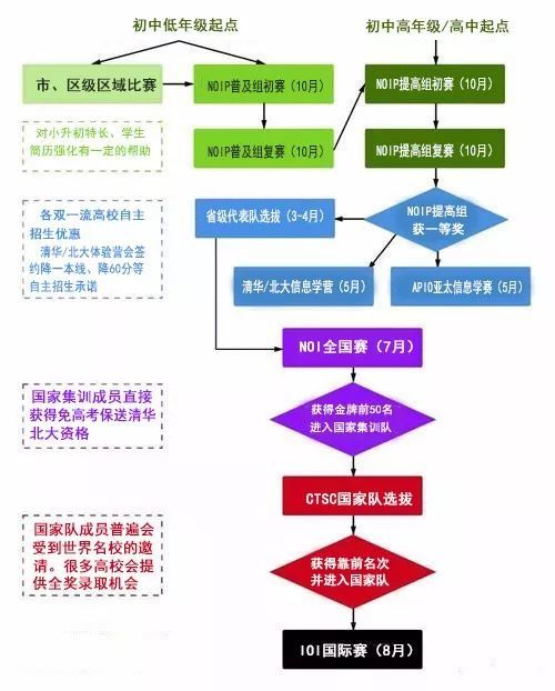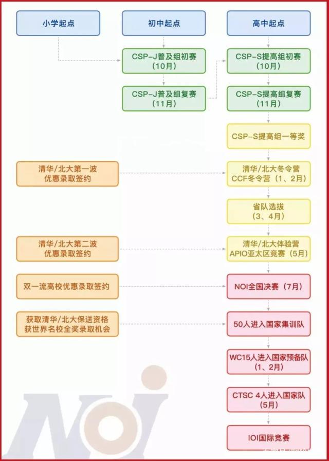 今天清北信息学金牌教研团队就为大家详细整理信息学竞赛之路的流程。