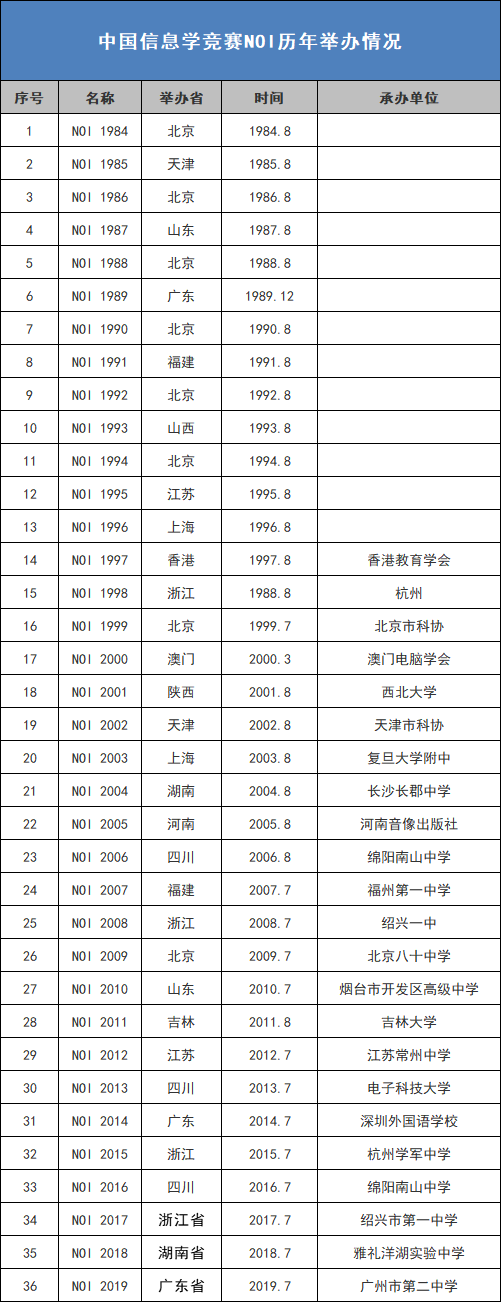 三、全国决赛(也称国赛、NOI)。