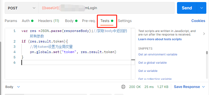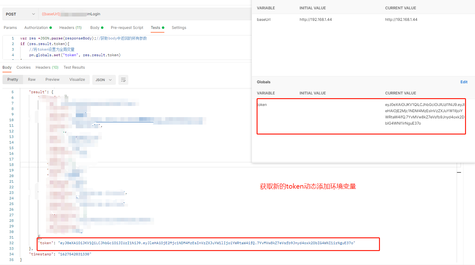 //"token", res.result.token 是指将响应的body中result下的token值赋值给变量名为token的变量